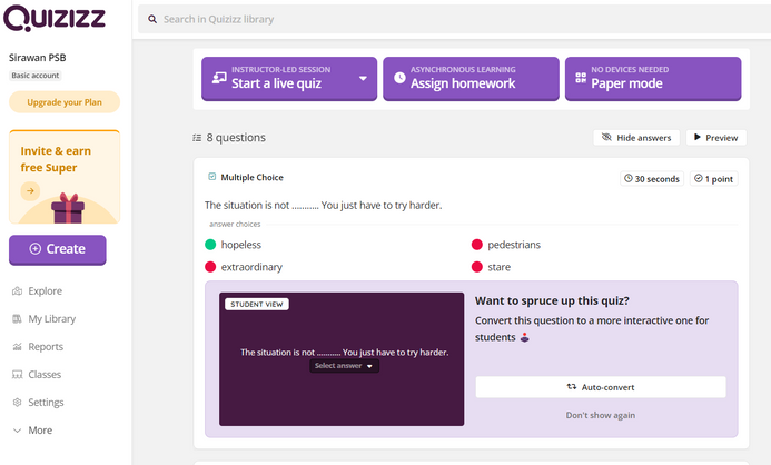 ส่งเสริมให้นักเรียนทุกคนมีโอกาสนำเสนอความคิดเห็น นำเสนองานหน้าชั้นเรียน
