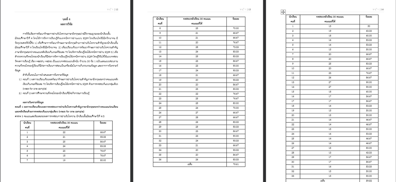 เพื่อเปรียบเทียบการพัฒนาทักษะการอ่านจับใจความสำคัญภาษาอังกฤษระหว่างคะแนนหลังเรียนกับเกณฑ์